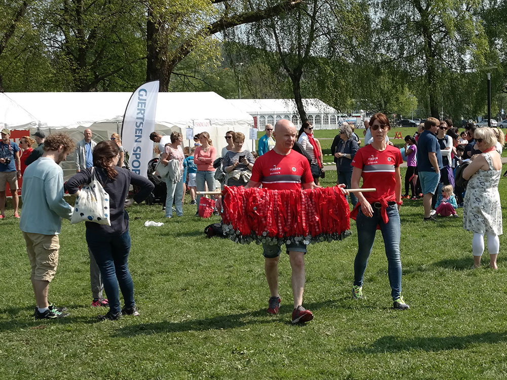 Utdeling av startnummer på idrettens hus (stadionveien 5, 3214 Sandefjord) torsdag 22. mai klokken 10.00-18.00 og fredag 23. mai klokken 10.00-14.00. Har du ikke mulighet for å hente på forhånd kan det leveres ut fra 11.00-12.30 i parken.